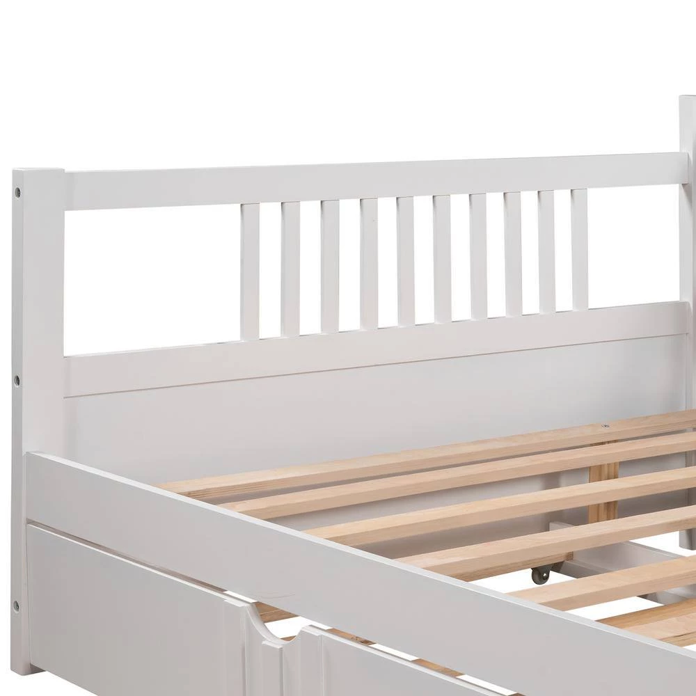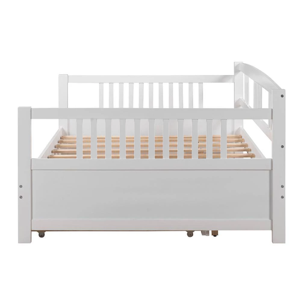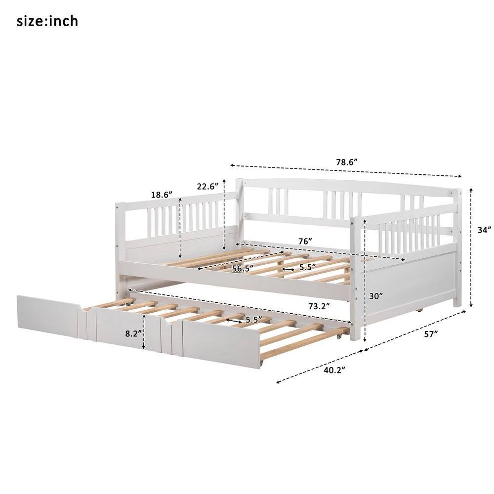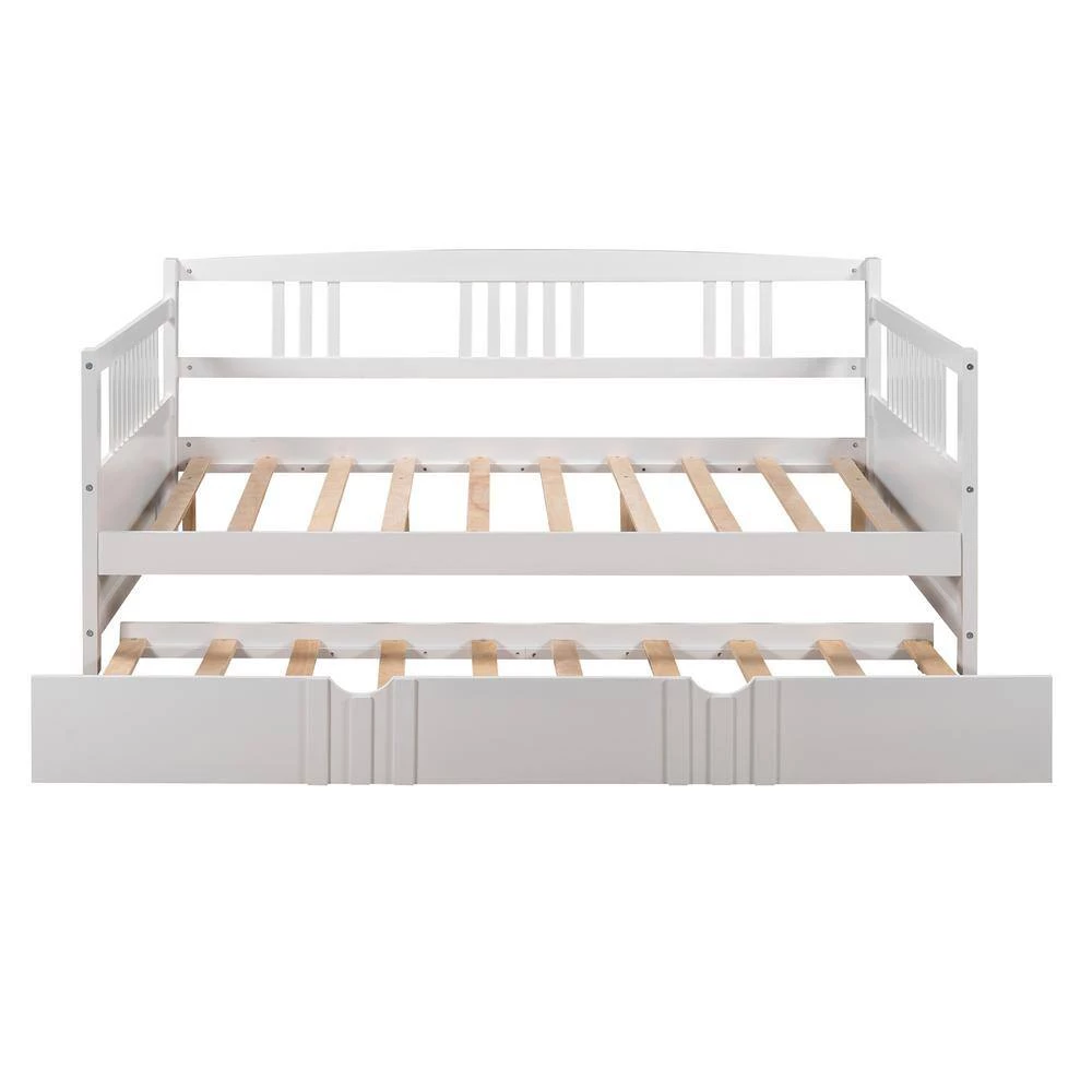 - Space-saving, full size daybed with a twin hideaway trundle bed is easy to create extra sleep space when needed ideal for accommodating guests or for family with several kids