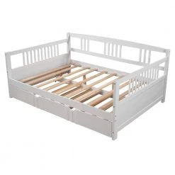 Are you finding a bed or sofa to sleep or have rest in leisure time. Our dual-use daybed frame can be used as sofa or bed. It is a good choice for you. Most of the frame is made of premium pine wood which ensures sturdiness and durability. And the accessories come with the daybed frame are sturdy and antirust so that the bed won’t make any noise and shake after you use it for many years. This full daybed comes with a trundle,easy to pull in and out, multi-functional piece of furniture ideal for small living spaces. And the appearance of our bed is concise and modern which can suit for any style of decoration.