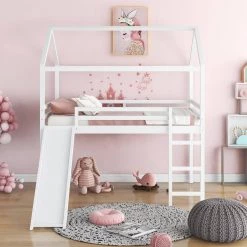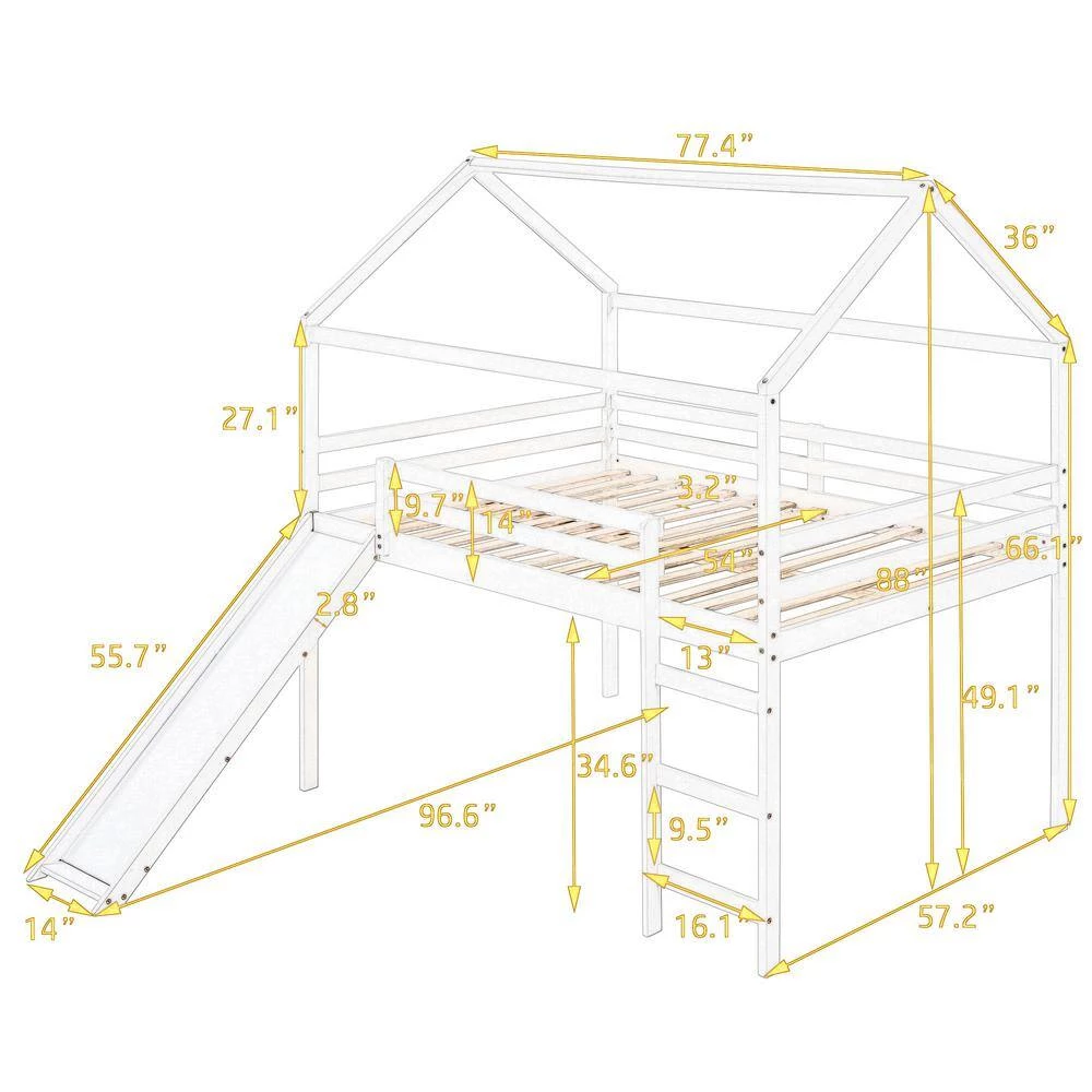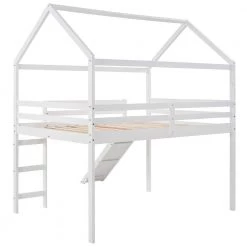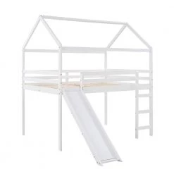 This Full Size Loft Bed with Slide is a minimalistic, stylish bed frame that works well with a variety of decorating styles and makes it easy for you to enhance and improve your space. Featuring strong, solid pine wood and many supporting slats, this bed is built to last, ensuring it will accompany you for many years. The beautiful finish lends an elegant look makes this bed frame an excellent addition to any bedroom, do not miss the chance take it home today. What’s more, this product arrives with a slat kit, do not miss the chance take it home today.