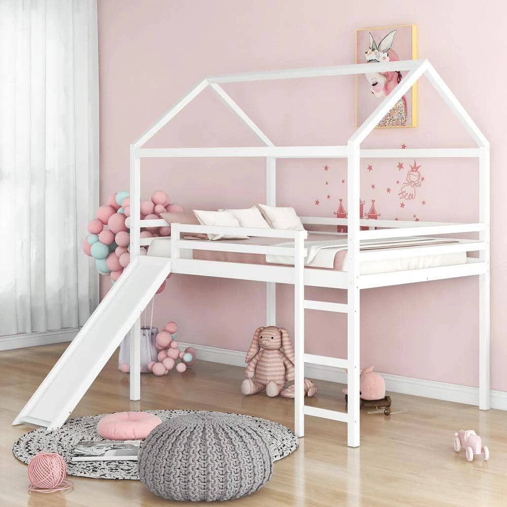 - Elegant design, wood full size loft bed with slide is designed with a clean silhouette and a hue of elegance it gives any room a spark of style that’s both modern and timeless