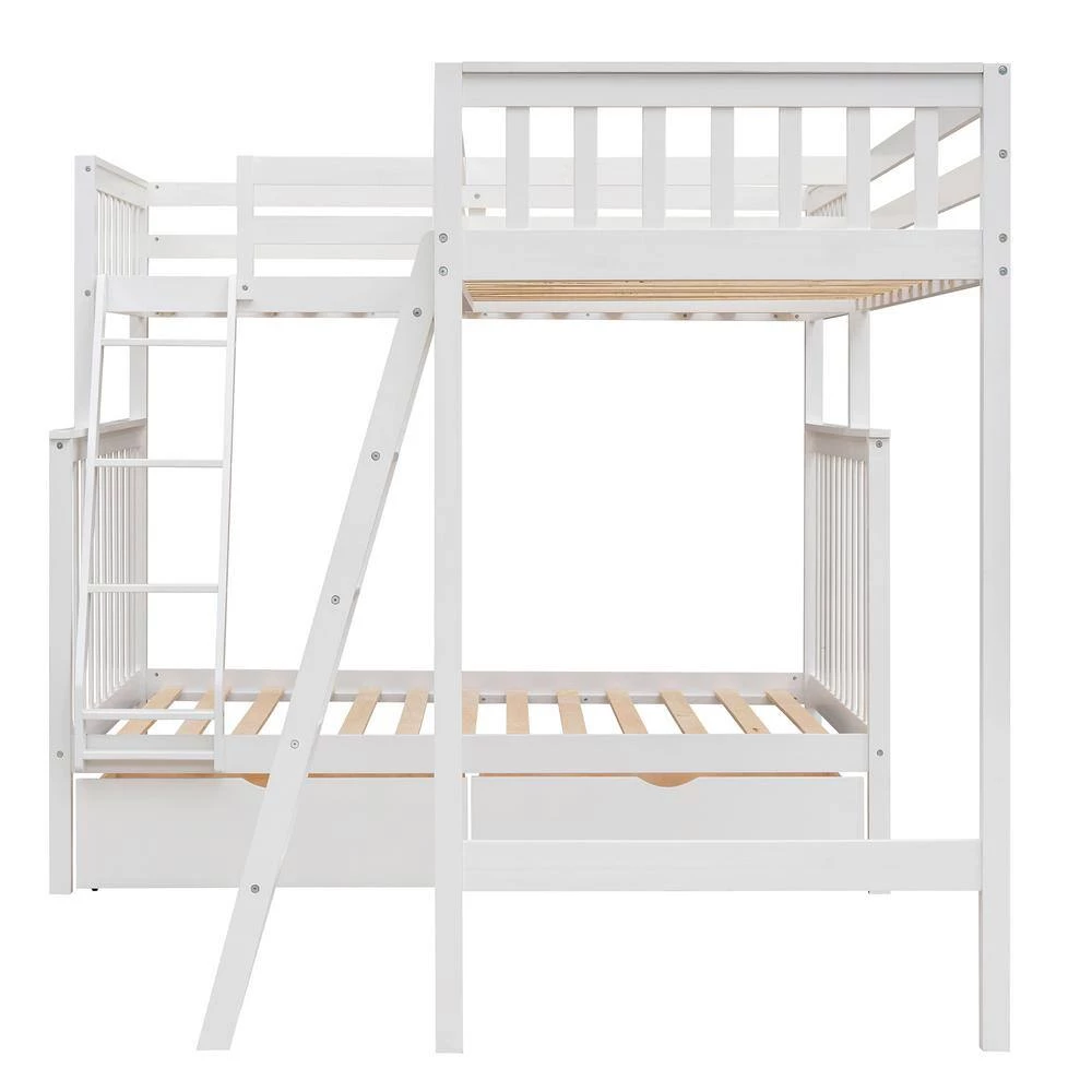 - [Solid Construction] The upper bunk features a full-length guardrail, while the bottom bunk is designed to include both a headboard and footboard. This bunk bed ensures top-notch security for you.