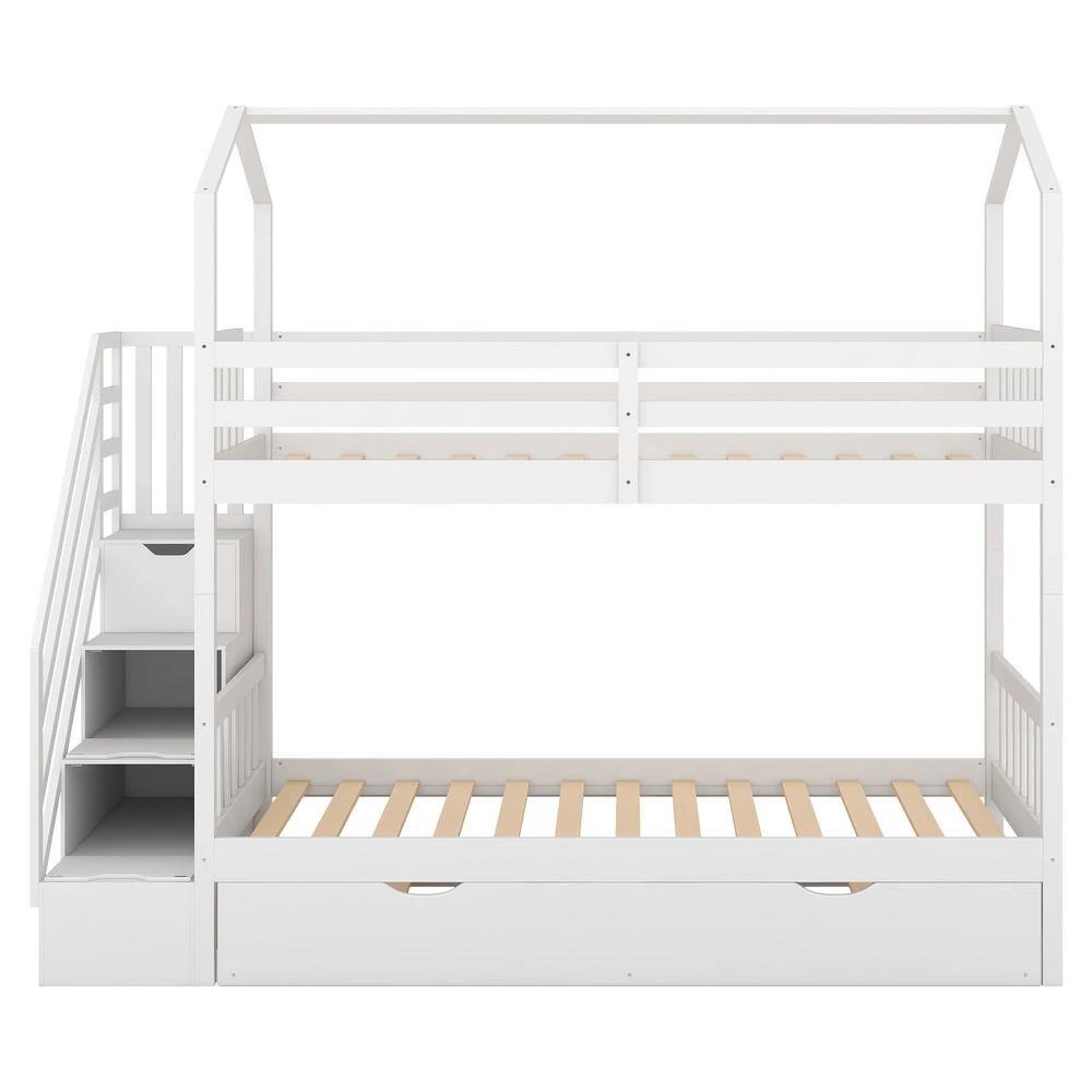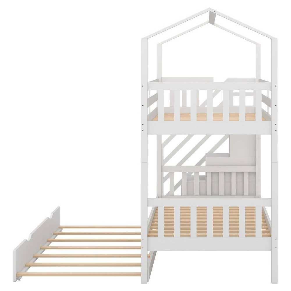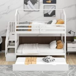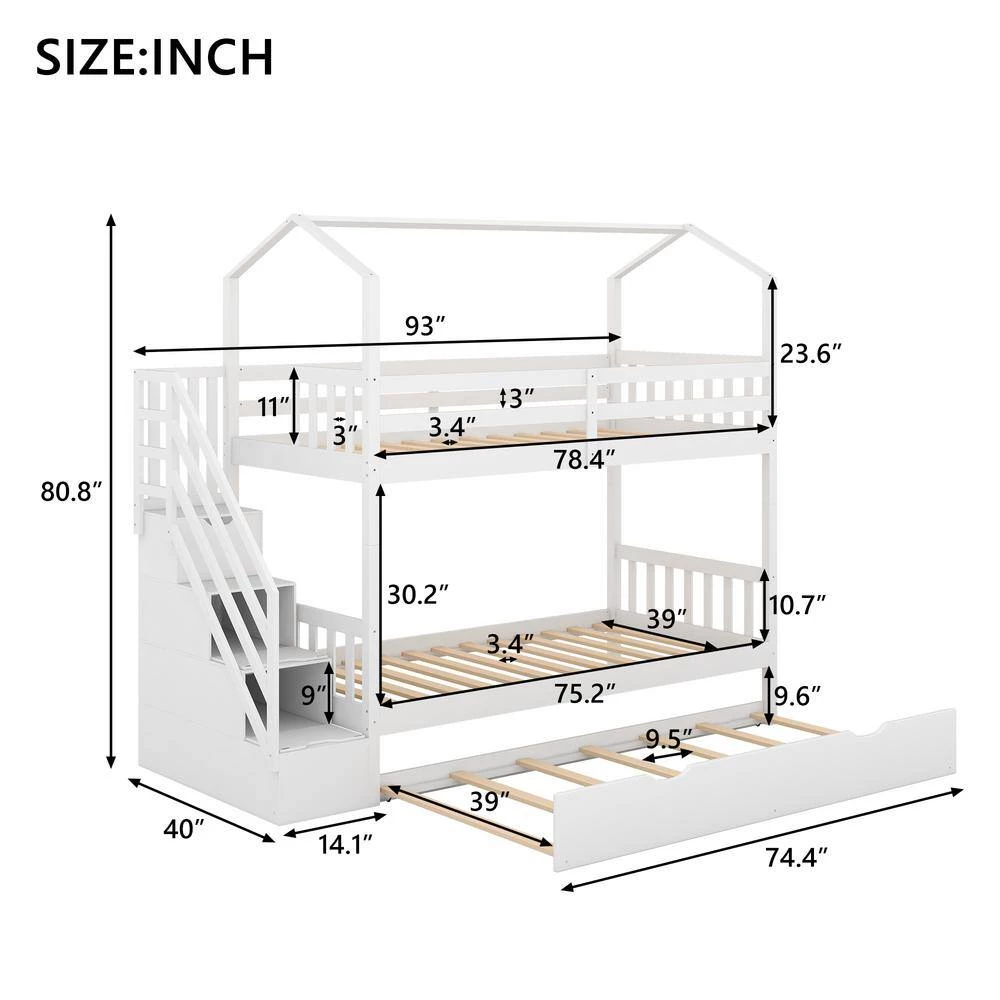 - [3 Beds in 1] Crafted with a whimsical playhouse design while maintaining a tasteful natural appeal using a neutral color scheme, this bunk bed with trundle offers a comfortable and exhilarating experience during both sleep and playtime that will let your imaginations run wild.Perfect for hours of entertainment and relaxation, the playhouse design makes this bunk the perfect centerpiece for any bedroom.