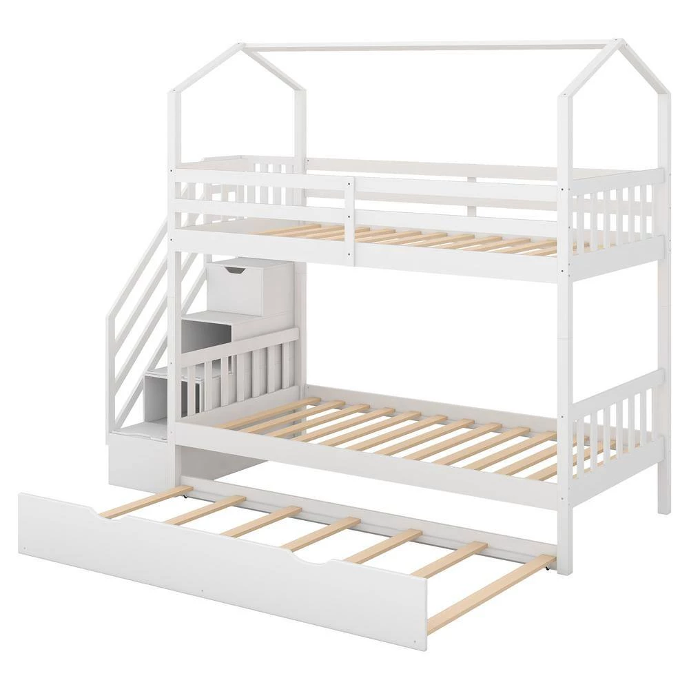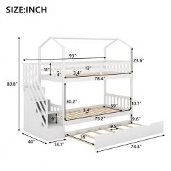 This house bunk bed with trundle is designed with a clean silhouette and a hue of elegance.It suits all styles of home decoration, and completes the look of any bedroom.Crafted with a whimsical playhouse design,comes with slide and storage steps, this bunk bed with trundle offers you a comfortable and exhilarating experience during both sleep and playtime that will let your imaginations run wild.