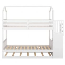 - [Staircase Storage] 3 compartments of different sizes hide underneath the stairs of this bunk bed and are perfect for you to store quilts, bed sheets, and other necessities. On top of that, you can store books and toys, making room tidying a breeze. With a built-in ladder and staircase, it is easy for children to climb up and down from the top bed.