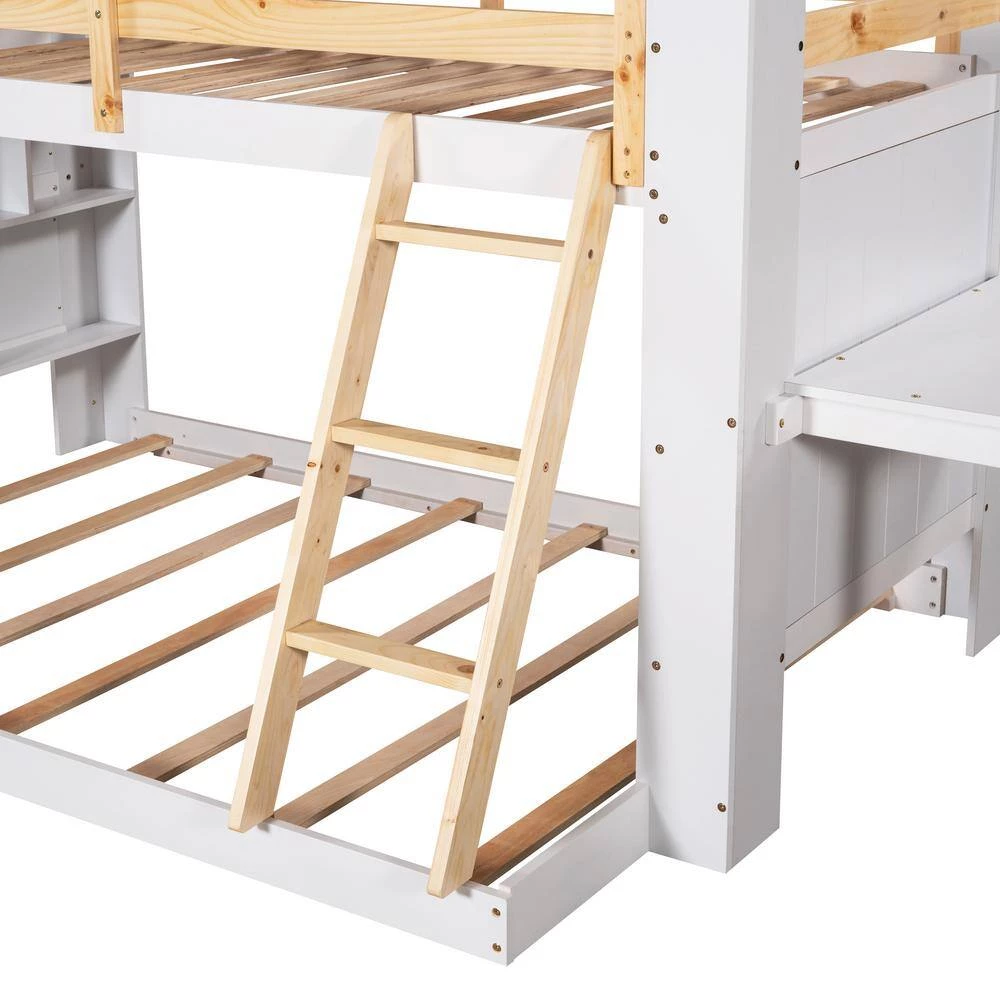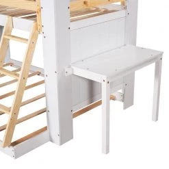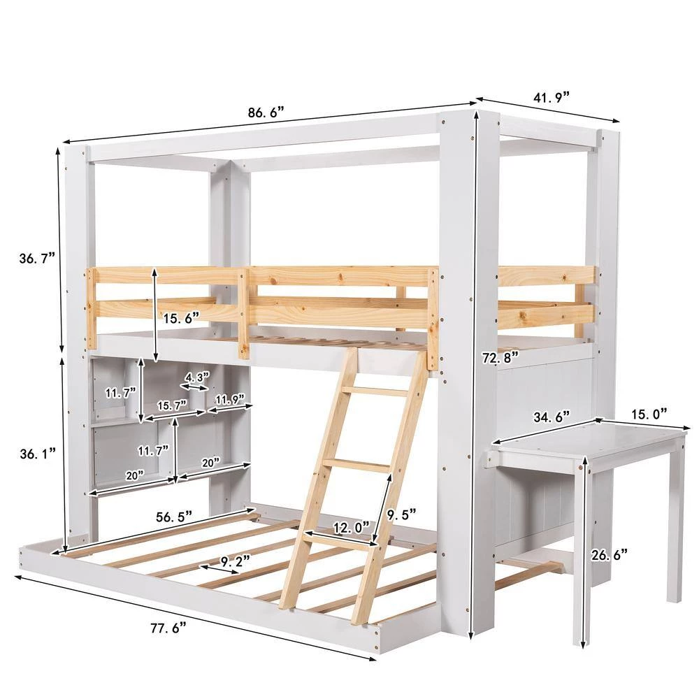 - [Maximize Space] A multifunctional bunk bed that saves space and versatility. Comes with a desk, and multi-level storage racks for books, children’s toys, and more. Even better is that the desk and ladder can be installed on the left or right side.