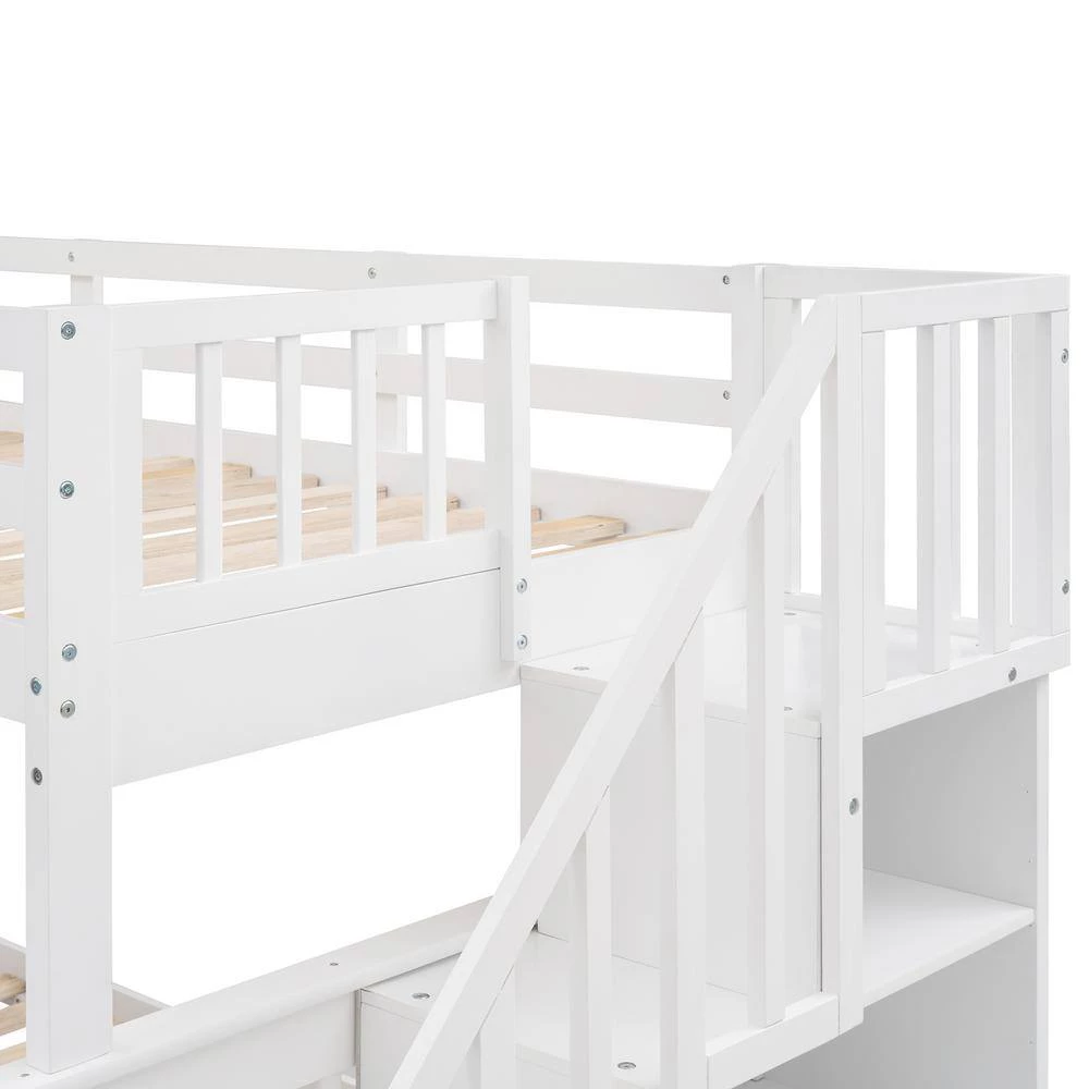 - Four compartments of different sizes hide underneath stairs of bunk bed and are perfect for you to store quilts, bed sheets and other necessities on top of that, you can store books and toys, making room-tidying a breeze functional and aesthetic, bunk bed will enhance any bedroom