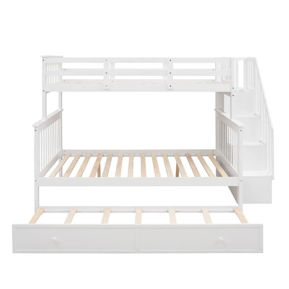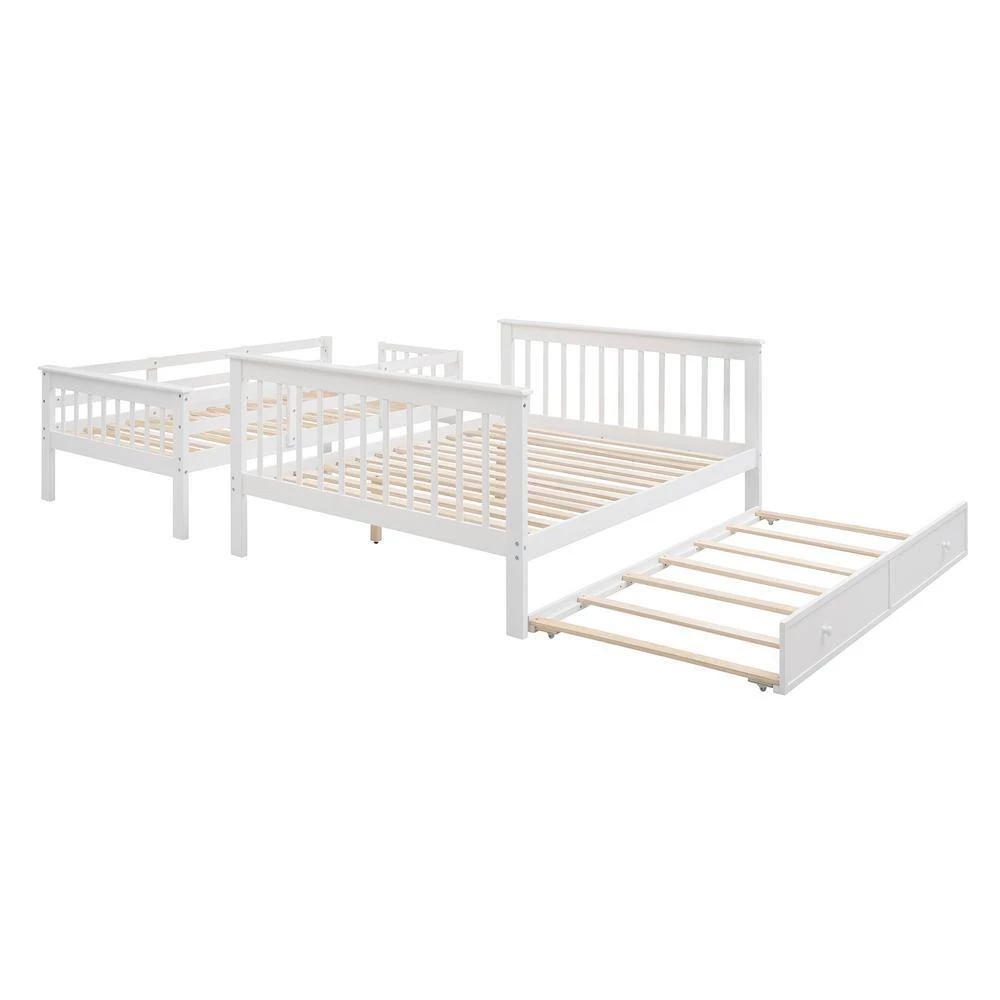 - Bunk bed features one twin size upper bunk, one full size bottom bunk and one twin size trundle for accommodating your family or any overnight sleepers can also be divided into three individual beds for even more convenience, depending on how you want to organize your space slat distance: 76 in. no spring box needed