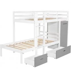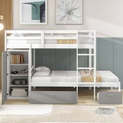- [Convertible Design] Featuring a convertible design,you can change the position of the built-in wardrobe and the down bed according to your own need.And the position of the upper bed’s guardrail will also be swapped.