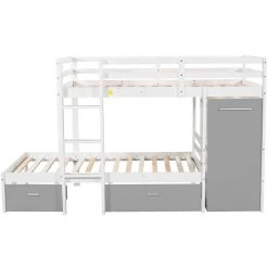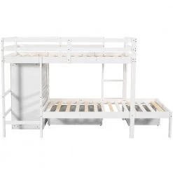 This bunk bed anchors your bedroom in simple and modern design while adding plenty of additional storage. It’s made from solid pine wood and MDF in your choice neutral finish.This bunk bed arrives with a ladder that makes it easy for you to climb into the top bunk.Built-in wardrobe and two drawers in the base of this bed gives you space to keep your clothes and spare parts.And the position of the built-in wardrobe and down bed can be interchanged left and right up to your needs.
