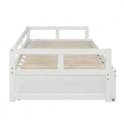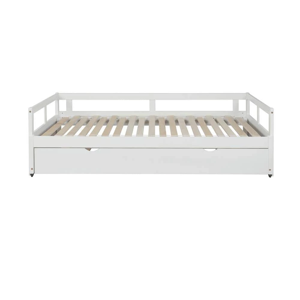 If you need extra sleeping space or your kids love sleepovers, this extending daybed with handy pull-out trundle is perfect for your home. High-quality, solid pine legs and a strong, durable frame ensures stability and durability for long-term use. Slat kit included so box springs are not required. This daybed is designed with a clean silhouette and a hue of elegance. It suits all styles of home decoration, and completes the look of any bedroom.