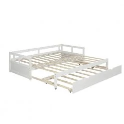 - [Twin to King Design] When the trundle is pulled apart, this daybed can be expanded from twin size to King size.The twin size is suitable for children or daily use, but when the guests arrive, King size is the best choice.