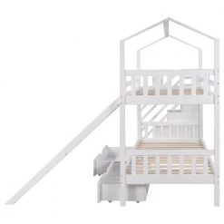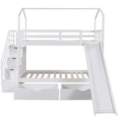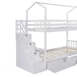 - Storage space 2-drawers underneath bed can be used for daily necessities storage such as socks and so on and attached staircase not only used as a staircase, it also has a storage function, these three storage cabinets are very suitable for people who like a lot of storage space