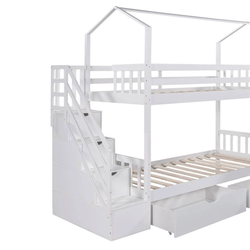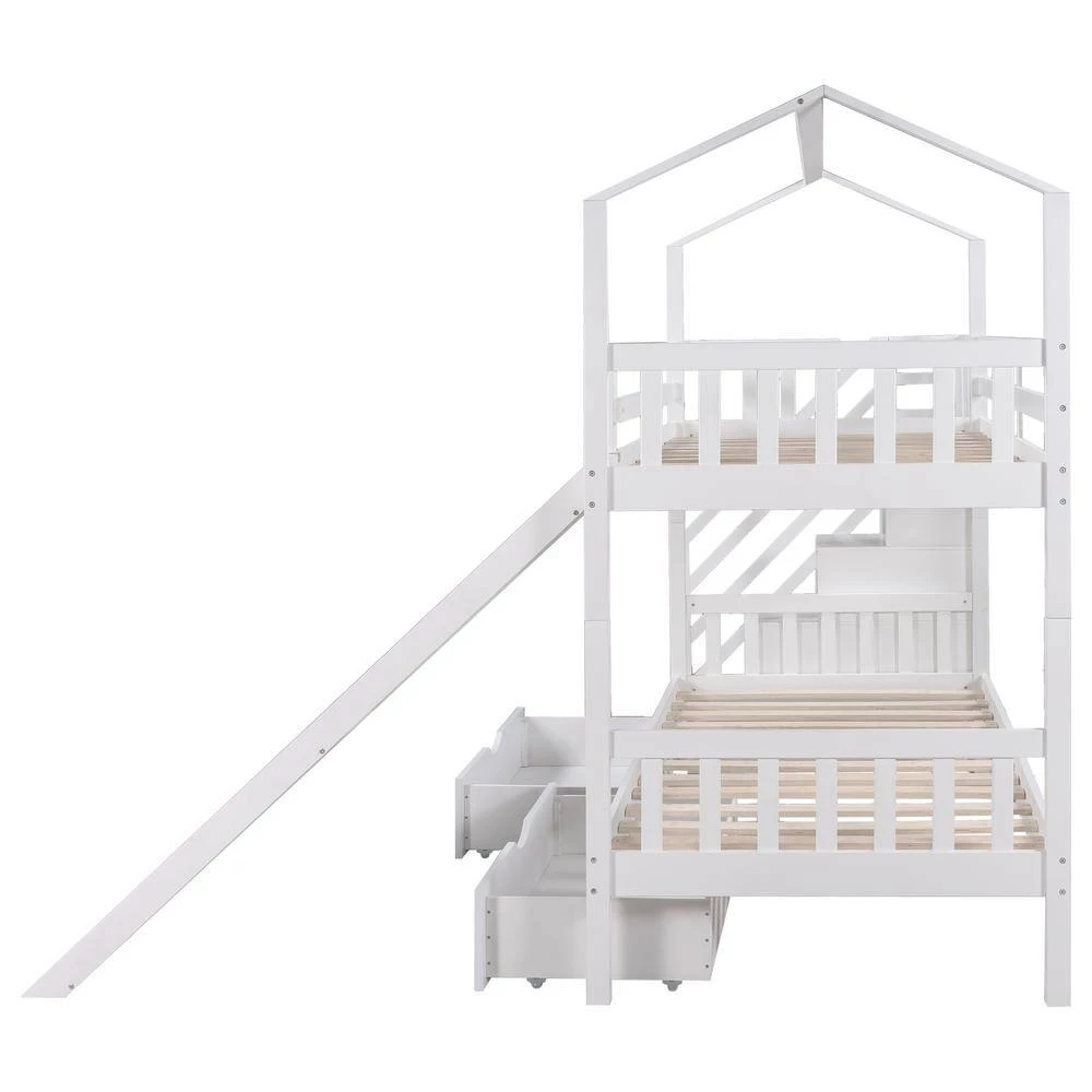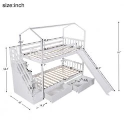 - House roof design featuring a pitched roof, house shaped bunk bed creates fun and adorable space that not only serves as a comfortable sleeping area but also double as a space for playing and having fun