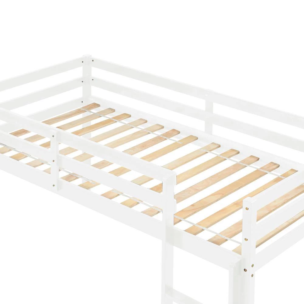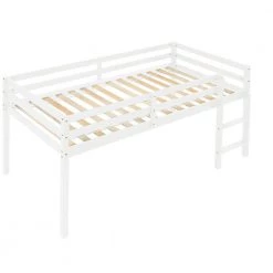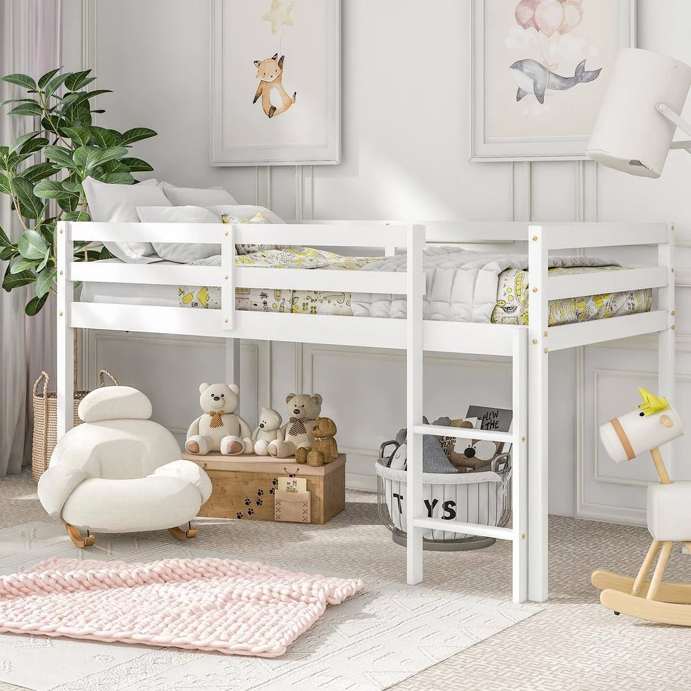 - Low Height Design]The low height feature of this loft bed not only ensures better stability but also reduce safety concerns, offering many restful nights of lasting sleep. In addition, the ladder is designed with a wider width to provide more spacious steps and solid support, making it easier for you to climb up and down the ladder.