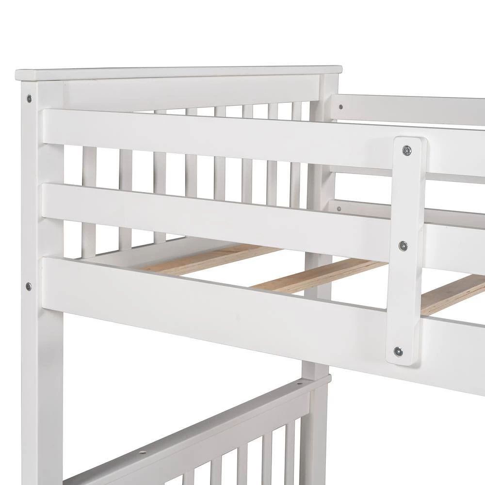 - [Stable and safety] The upper bunk features a full-length guardrail, while the bottom bunk is designed to include both a headboard and footboard. Along with the handrail, this bunk bed ensures top-notch security for your family. What’s more, the solid legs that made of solid pine wood can add strength and durability.
