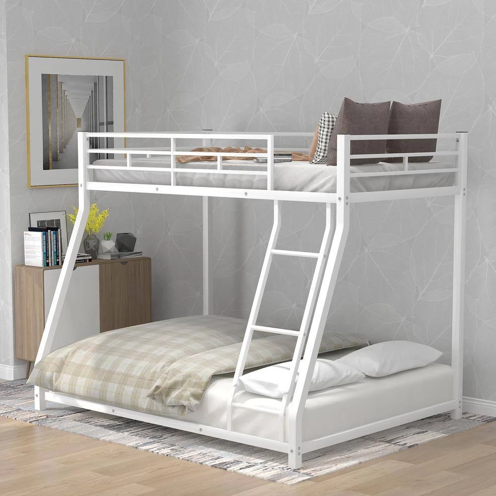 The metal floor twin over full bunk bed is elegant and functional making it a perfect addition to any room.It comes with a contemporary design and durable steel frame construction ideal for any modern setting. The space-saving design of this bunk bed allows you to maximize your room space as well.Inclined ladder reduces discomfort on the feet.This bunk bed can make a great choice for your kids’ room as it increases the fun during bedtime.