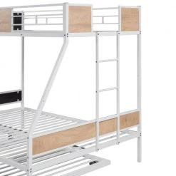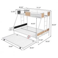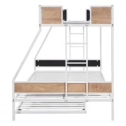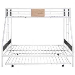 This twin Over full bunk bed made by sturdy metal provides extra durability and safety. Additional metal slats support mattresses and extend their life effectively. Full-length guard rails surrounding top bunk keeps you child safe and a good night sleep. It is an excellent space saver. Getting rid of the heavy spring box, extra space under the lower bunk is created for storage. Contemporary design makes it easy to integrate into your bedroom decoration.