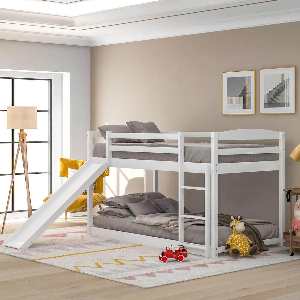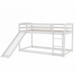 - [Low Bunk Bed with Slide] The unique slide design meets the family members’ game needs.Everyone will love the multifunctional design, it will can turns your living room into a playroom. But easily removes when it’s no longer needed. The slide and the ladder are convertible, both of them can be put left or right.