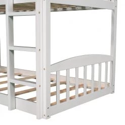 - [Designed with Safety in Mind] The bed frame is constructed from selected solid pine wood and MDF and iron alloy bolts which keeps the whole bed sturdy and wobble free. The upper bunk has high rails to ensure secure and worry-free nights.The strengthened frame is capable of holding up to 250lbs on the top bunk and 300lbs on the bottom bunk.The bunk features upper bunk slats and lower bunk slats to help increase the longevity of your mattresses,no box spring is needed.