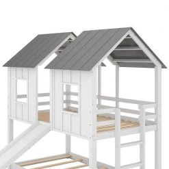 - [House and Slide Design] Featuring a pitched roof and wall section with window, this unique and intricately designed bunk bed creates a fun and adorable space that not only serves as a comfortable sleeping area but also double as a space for you to play and have fun.The equipped slide is also an extra fun.