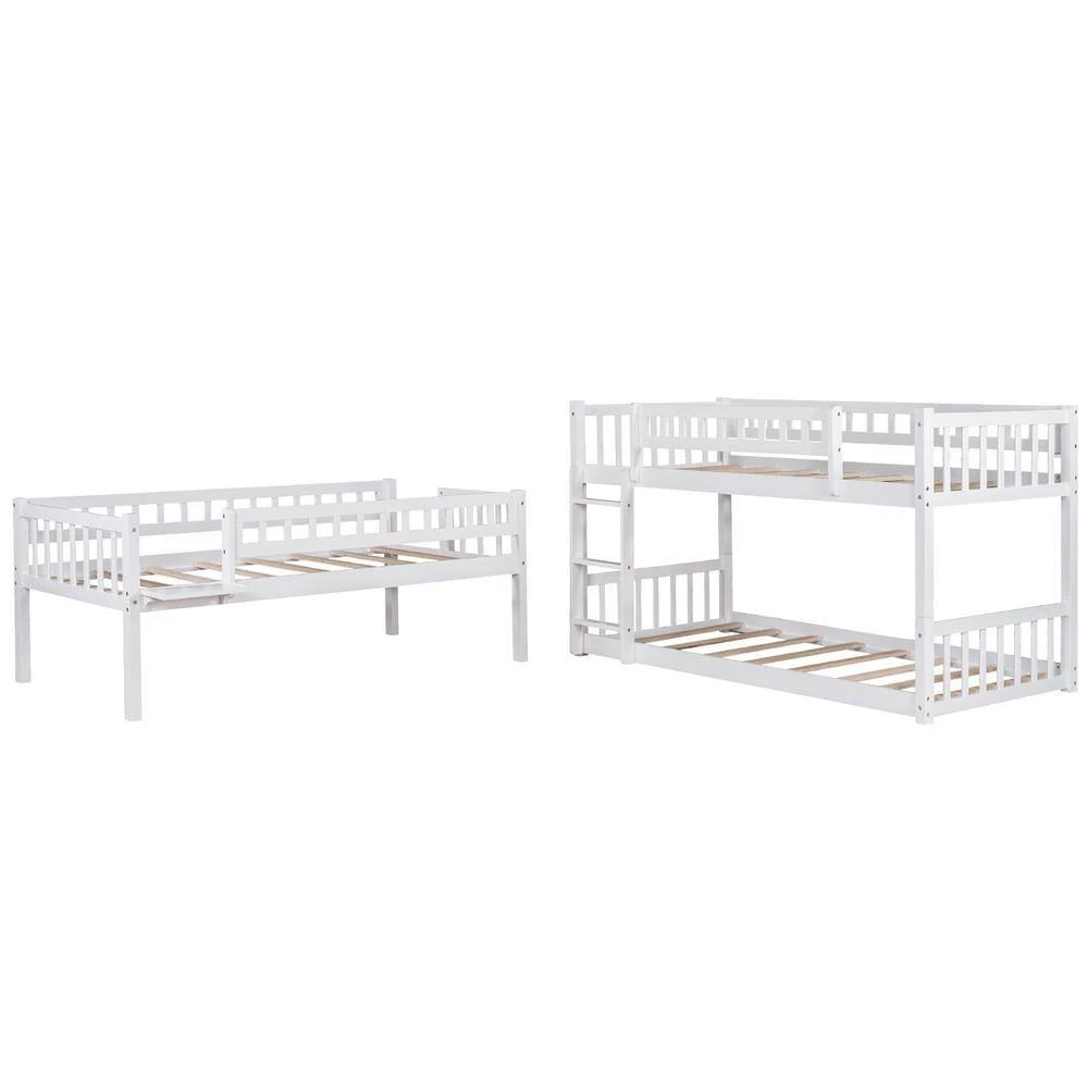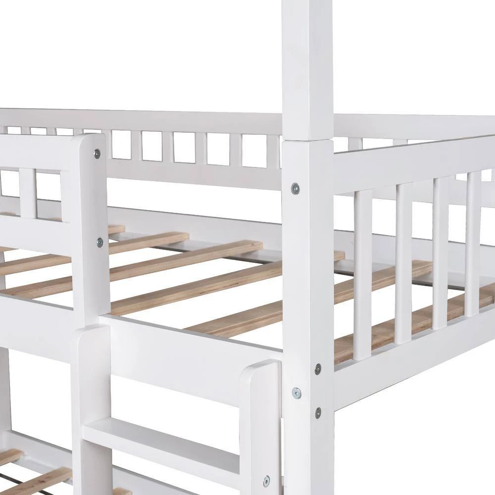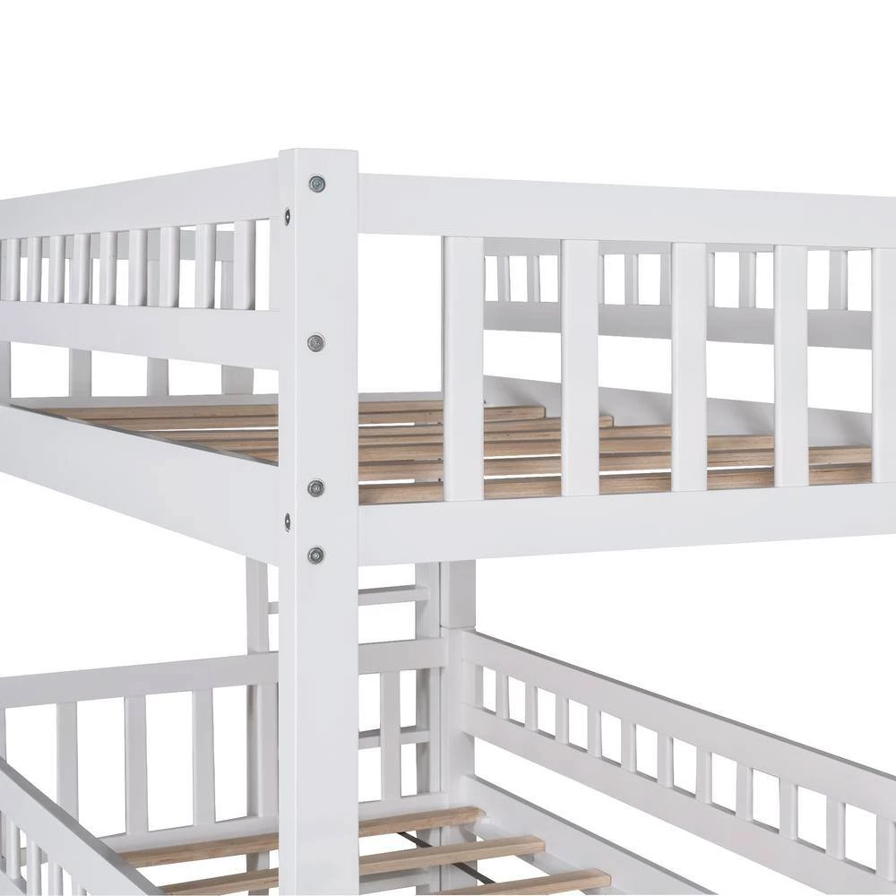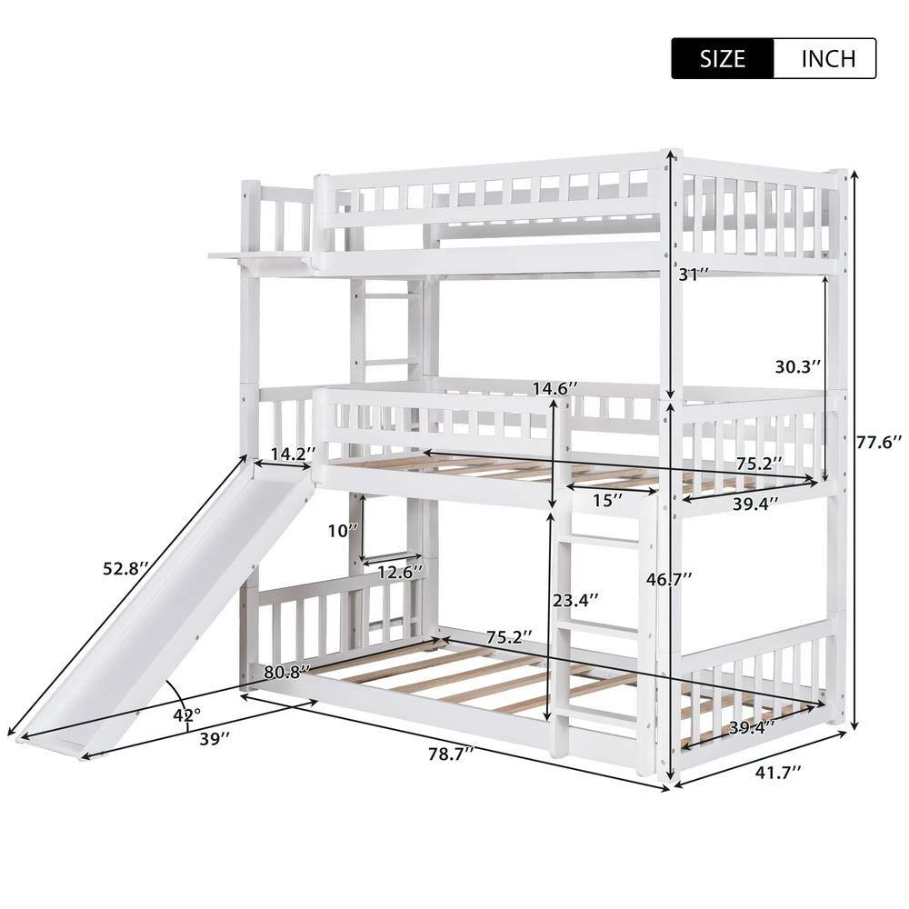 Featuring a twin-over-twin-over-twin structure, this triple bed provides a convenient and flexible arrangement option for large families and sleepovers by taking advantage of vertical space. A gray finish enhances the smooth lines and add a contemporary feel to any room set aside for multiples to sleep. Crafted with pine wood and plywood, this triple bed is sturdy and durable to withstand the test of time. You can easily access the upper and middle bunks with 2-built-in ladders. Sturdy guardrails protect you as they sleep through the night. The specially designed slide can meet the play needs of you and develop their balance ability. This set works perfectly as a stacked twin-over-twin-over-twin unit, or divided into 3-separate twin beds. You can choose the combination method based on your own needs.
