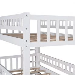 - Sturdy and durable: crafted with pine wood frame, this triple bed is sturdy and solid, no box spring is needed, the full-length guardrails of the upper and middle bunks are equipped to protect you from accidental falls to keep them safe and secure during play or sleep