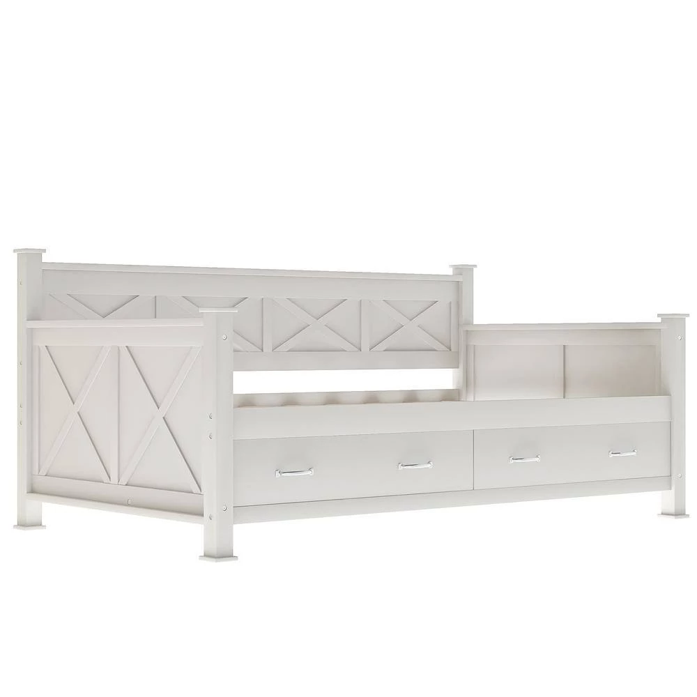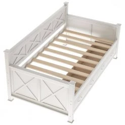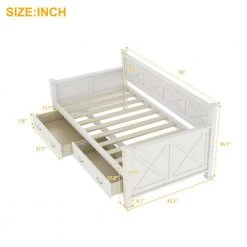 Enjoy your sleep and long naps with this modern and elegant twin daybed. Constructed of solid wood and MDF, this bed guarantees security and stability, offering you superior experience. The “X” shaped frame brings rustic casual style to your room, providing unique highlighting. 2-large under bed drawers are available for your clothing, bedding and other stuff. Comes with headboards without hollow, it can also serves as a twin size bed for children and the compact design makes it suitable for any room, living room, bedroom, kids room, spare room, etc.
