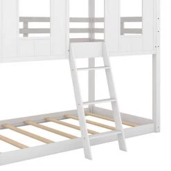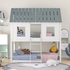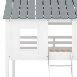 - Safe design, bunk beds with built-in ladder is a space-saving design, versatile bunk bed frame with roof, house-shaped cabin bed, perfect gift for your family members, and more fun sleeping in cabin bed with siblings and sleepovers