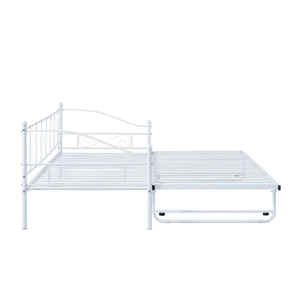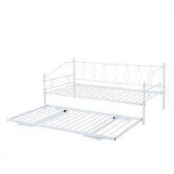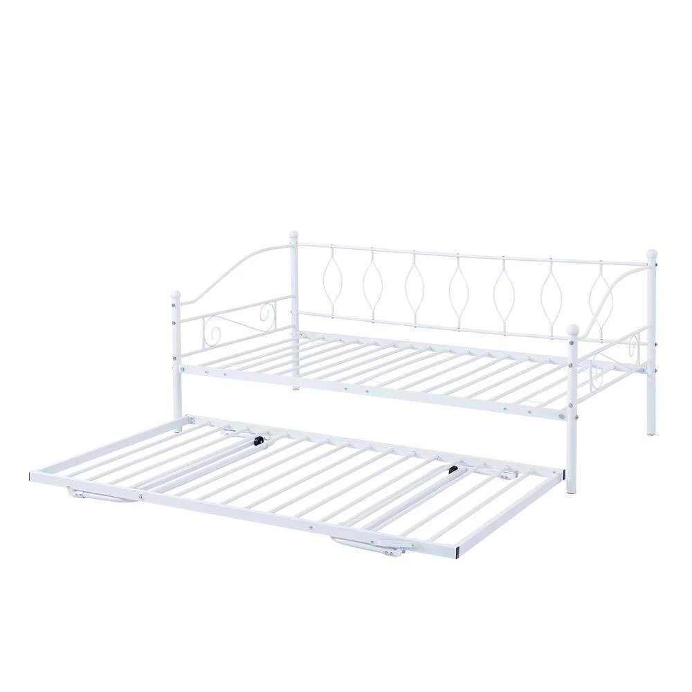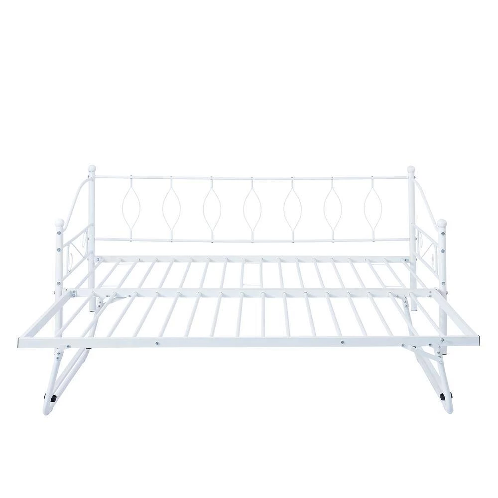 - Twin size daybed with trundle, with elegant and fluid lines plus simple and graceful pattern design, daybed with pull-down bed brings artistic atmosphere to your home pull-down bed can double size of daybed to offer larger space to use, user only need to pull out and let stand, because has same height as bed moreover, pull-down bed has trundle to ensure smooth using experience