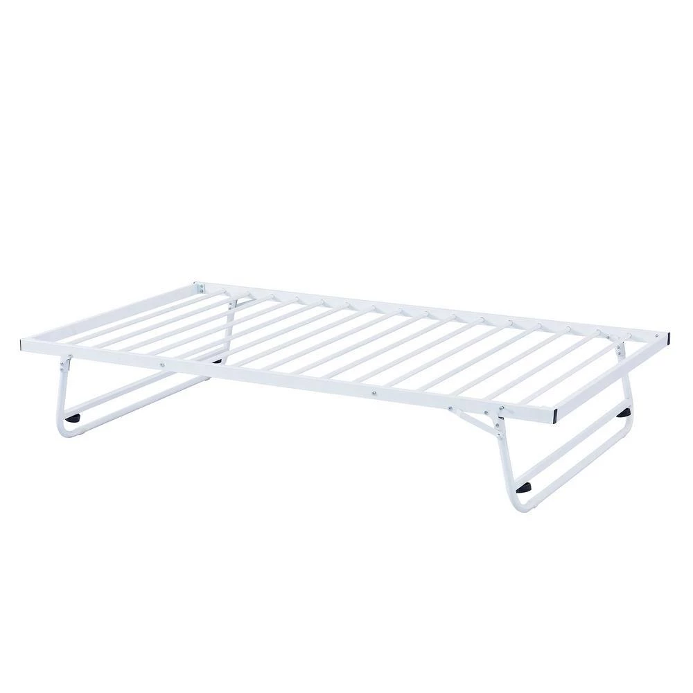 Modelling design is elegant and simple, and the graceful lines represent demanding craftsmanship, this daybed with pull-down bed is manufactured with high quality steel to meet various needs in your daily life. For stability and durability, the surface of this steel daybed has been processed by powder coating, so it offers comfort touch feeling. The pull-down bed with trundle can be stand up and it has the same height with the daybed, in that case, the using area of this daybed would be double. It would be a wonderful double bed in that way, and as a guesting bed if need. Since the pull-down bed can be used alone, this daybed with pull-down bed offers a minimum of three using methods. White and black, the two different colors allow you choose the options according to your preference or home style.