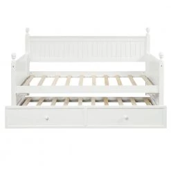 - 【Unique design style】:It offers traditional charm with slatted panels and turned finials atop each post. Convenient hand holds are cut into the face of the trundle to make is easy to pull out.High-quality accessories will keep parts of the bed tightly and the bed won’t make noise.
