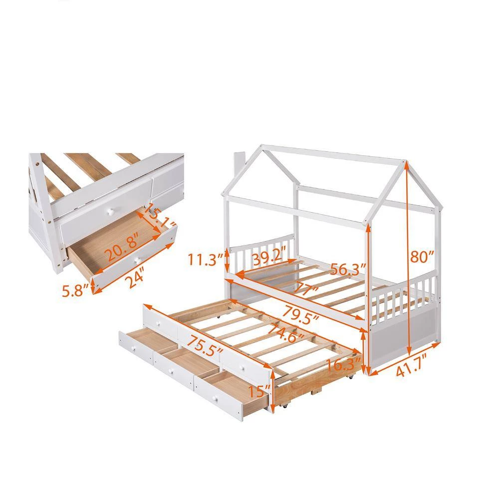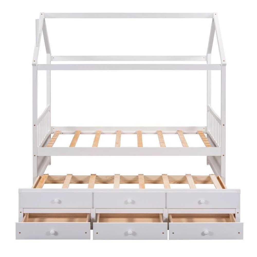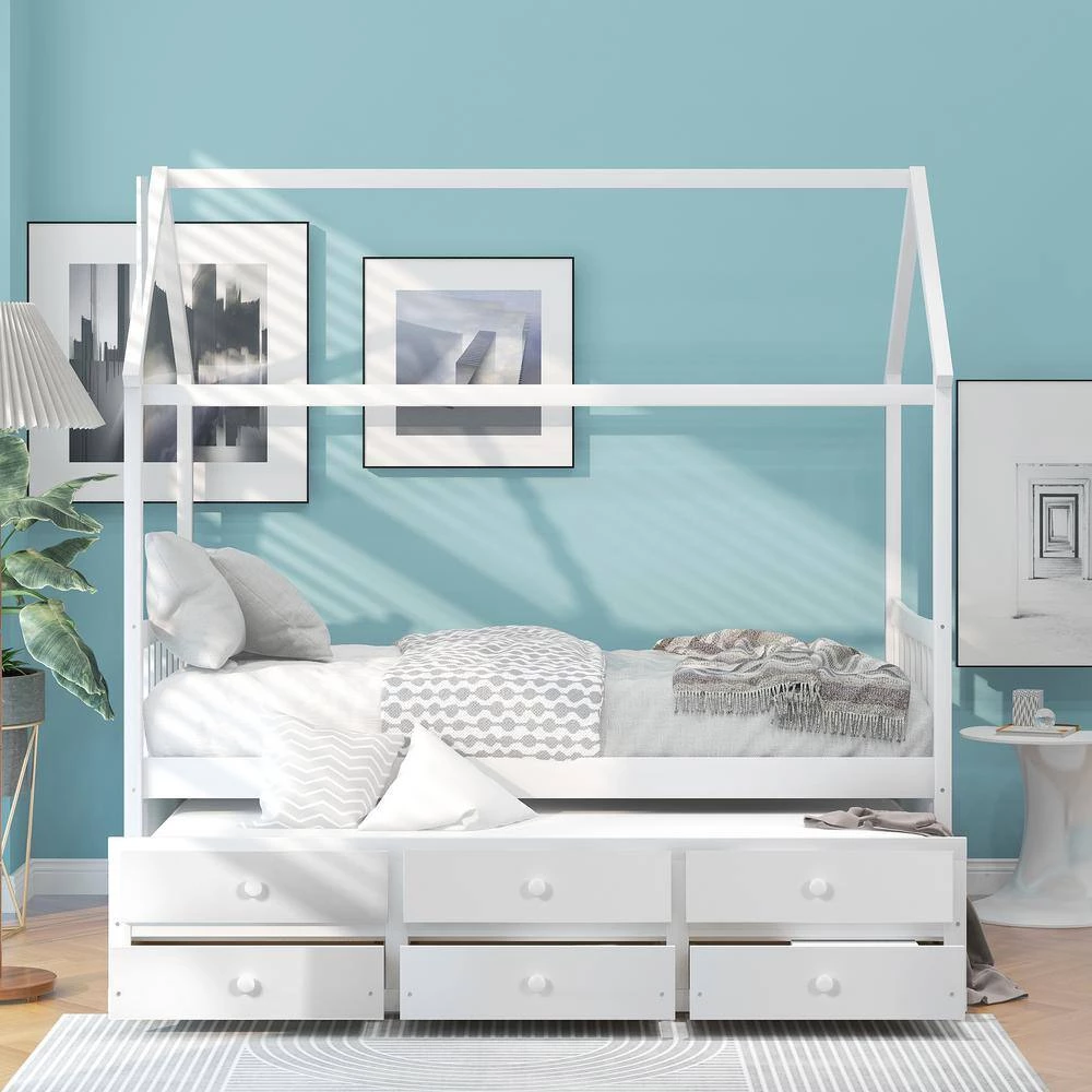 - Maximized space, house bed with handy pull-out trundle and three functioning drawers takes up minimal space for spontaneous sleepover guest trundle and drawers can easily be pulled in and out for maximum storage space, perfect for organizing anything from clothes and bed linens to toys and games such a versatile piece, bringing functionality, versatility, and style to your home, perfect for those who have lots of visitors
