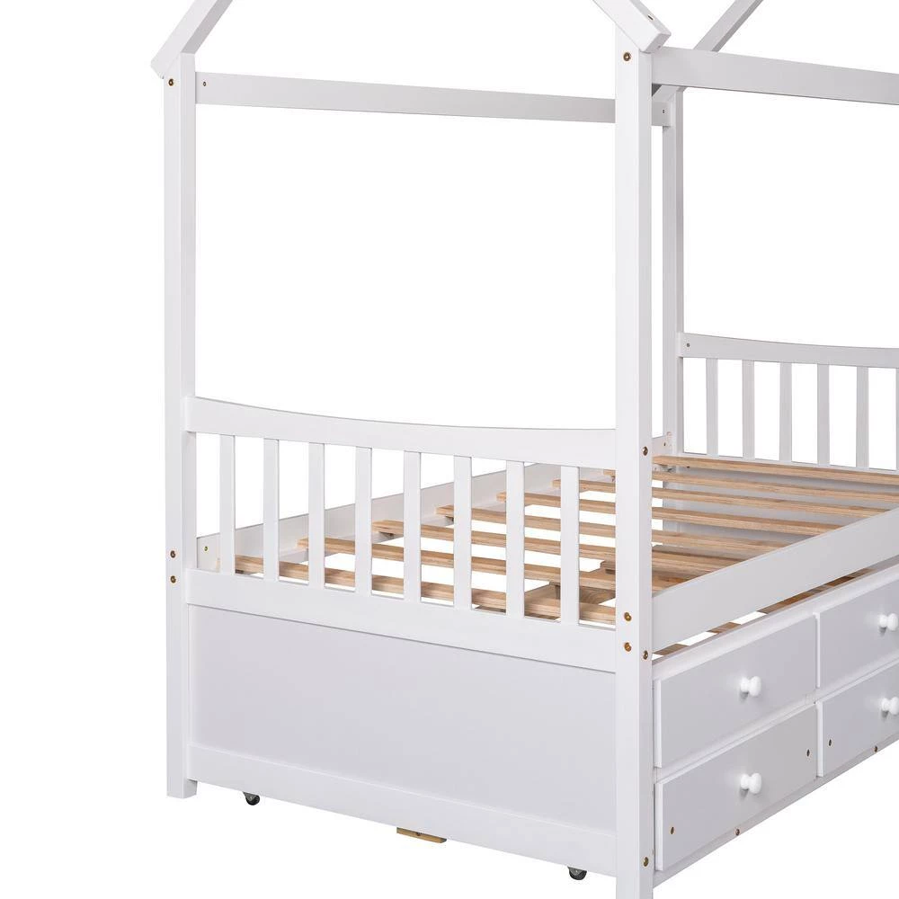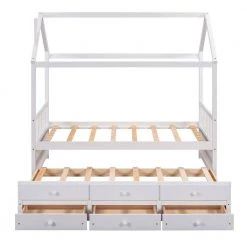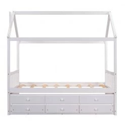 If you need extra sleeping space or your kids love sleepovers, this house bed with handy pull-out trundle and 3-drawers is perfect for your home. High-quality, solid and a strong, durable frame ensures stability and durability for long-term use. Slat kit included so box springs are not required. This house bed is designed with a clean silhouette and a hue of elegance. It suits all styles of home decoration, and completes the look of any bedroom.