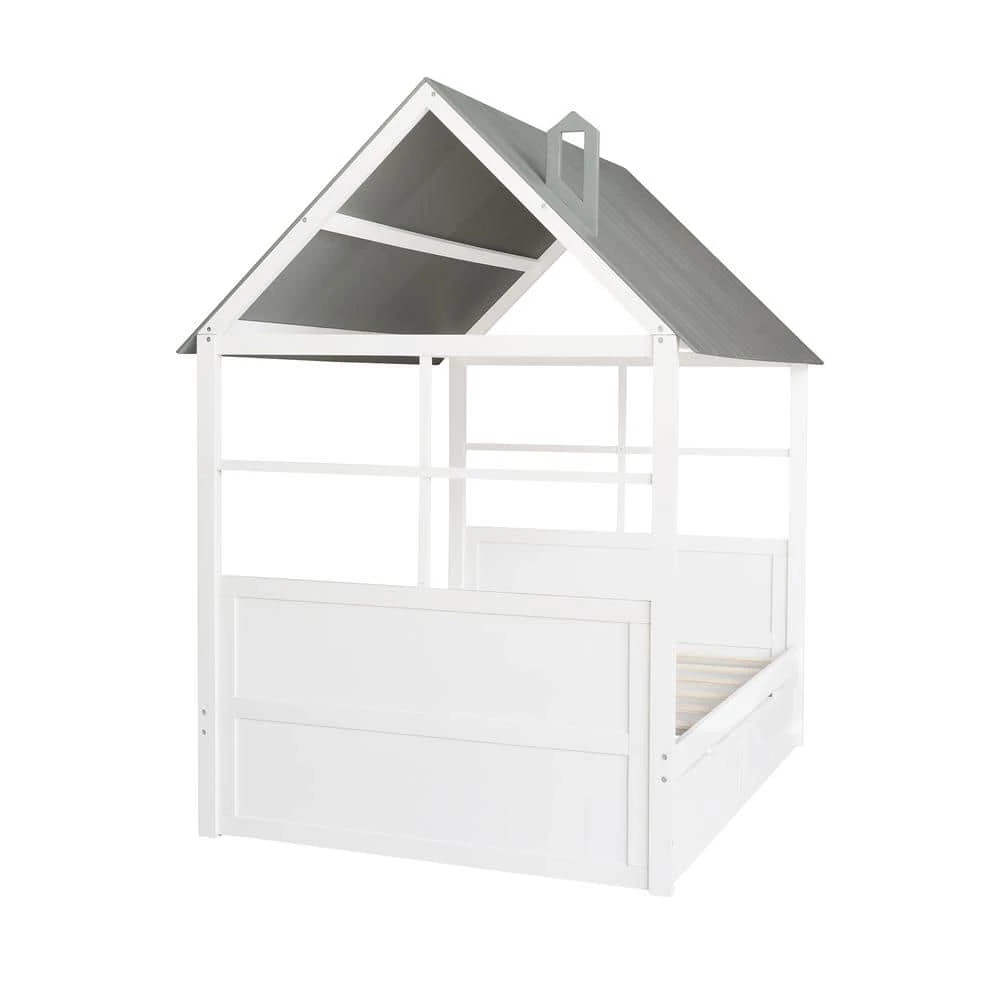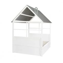 Take your children’s bedroom to the next level with this Full Size House Bed with Twin Size Trundle that not only saves space, but creates an exciting atmosphere for your kids. Featuring a playhouse-inspired window, this bed doubles as a play place perfect for kids to study, watch TV or explore their imaginations. Enjoy this bed for years to come with its durable build, manufactured with quality lumber and pinewood to withstand horseplay, scratching and other untimely wear. Comes complete with thick slats to preserve the life of your mattress.