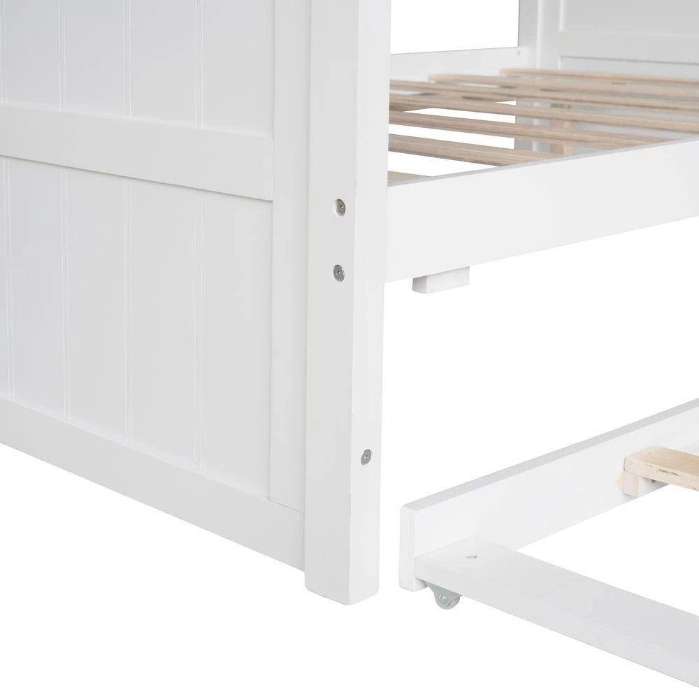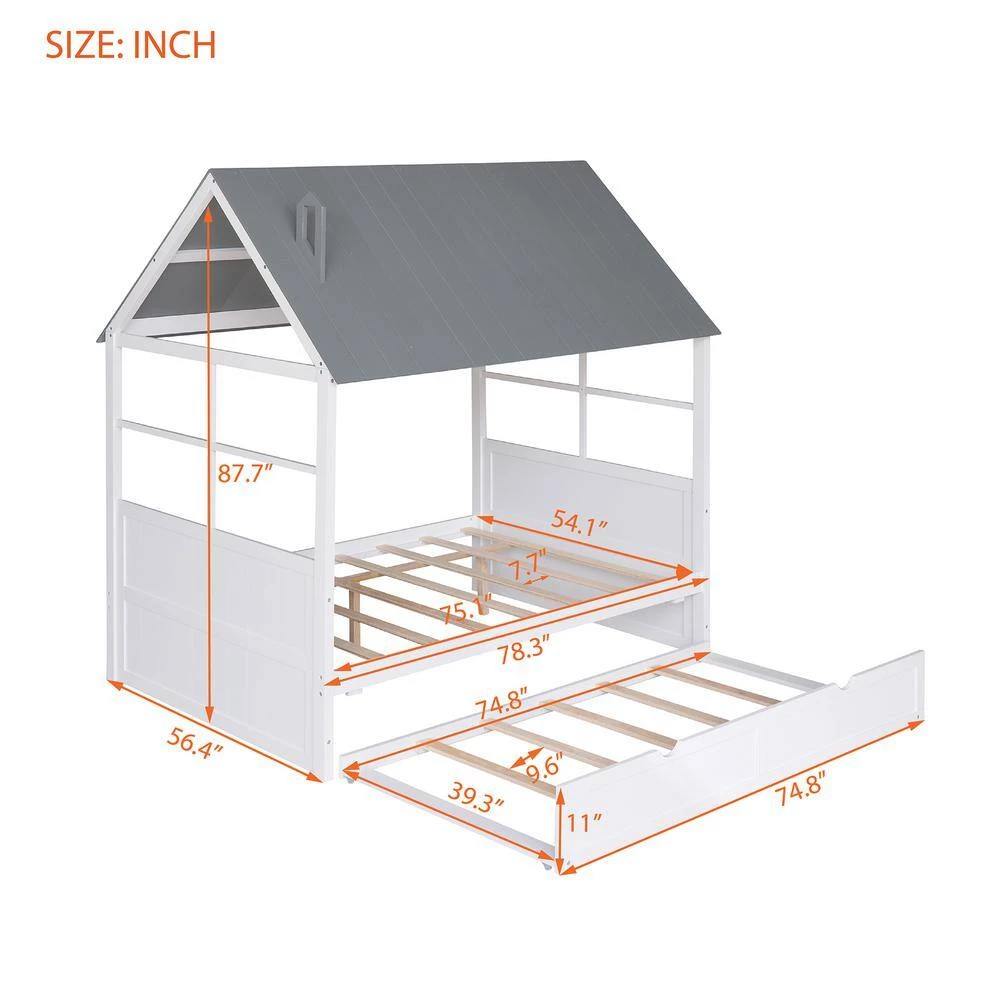 - Quality structure, wood house bed is crafted from a solid pine wood frame, with commercial grade mdf board for quality control and durability built to last, this bed is firmly secured with heavy duty screws for solid stability you can rely on coming with built-in mattress support, the bed features 8 upper bed slats and 7 trundle bed slats to help increase the longevity of your mattresses